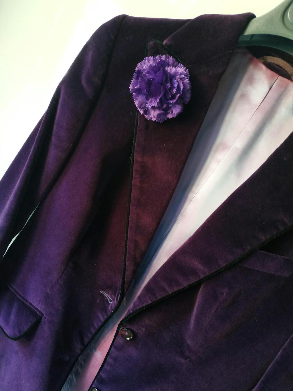 I feel so honored and I will wear the boutonnières with pride. And thank you so much for giving me an extra, third one. I love the colour purple and it goes so well with my frock-coat. 🌹